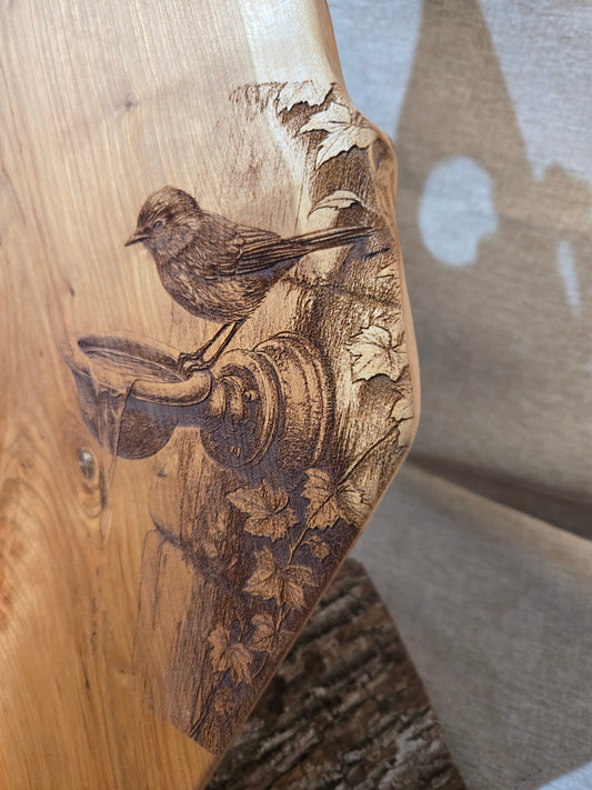 18" Black Walnut Live Edge Charcuterie Board w Hummingbird Engraving