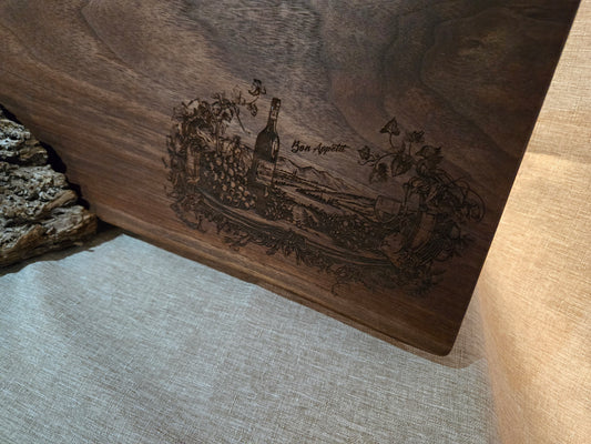 31" Black Walnut Live Edge Charcuterie Board w handle & "Wine" engraving