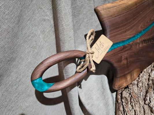 29" Black Walnut Charcuterie Board w teal green epoxy accent